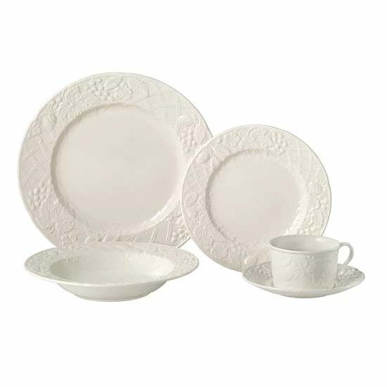 - 5-pc. set includes: 11 1/4-in. dinner plate, 8 1/4-in. salad plate, 9 1/2-in. soup bowl, 10-oz. teacup & 6 1/2-in. tea saucer