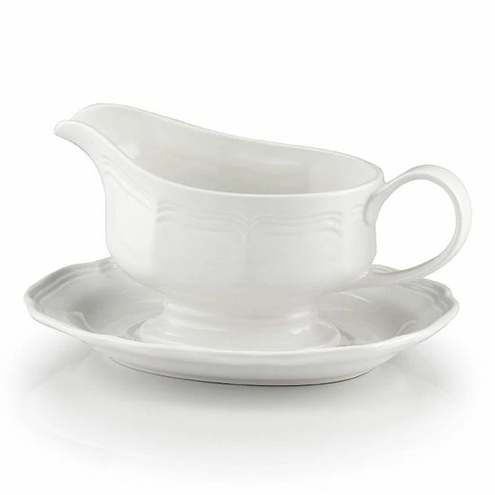 This lovely Mikasa gravy boat set is a must for mealtime.