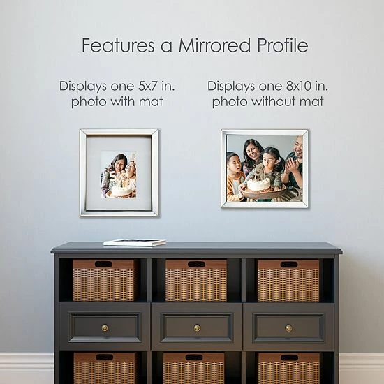 - Holds one 5″ x 7″ photo with mat or one 8″ x 10″ photo without mat